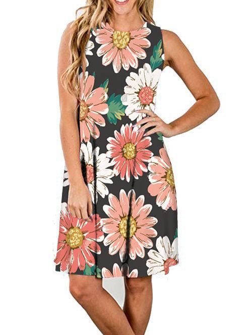 • Features: Flowy dress round neck. sleeveless. floral printed. loose fit and knee length