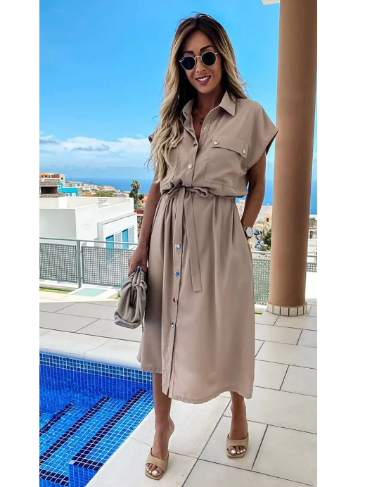 Ruffle Sleeve Button Down Wrap Tie Waist Dress