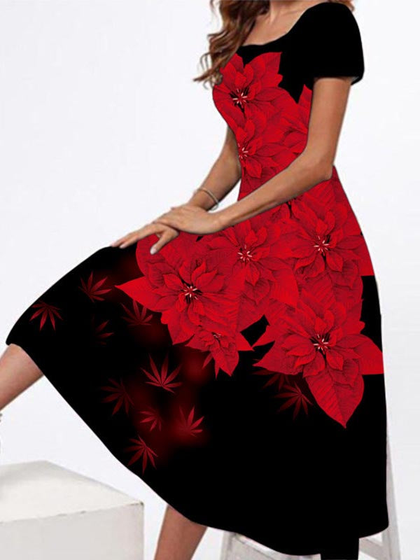 Scoop Neck Floral Short Sleeve Maxi Dress