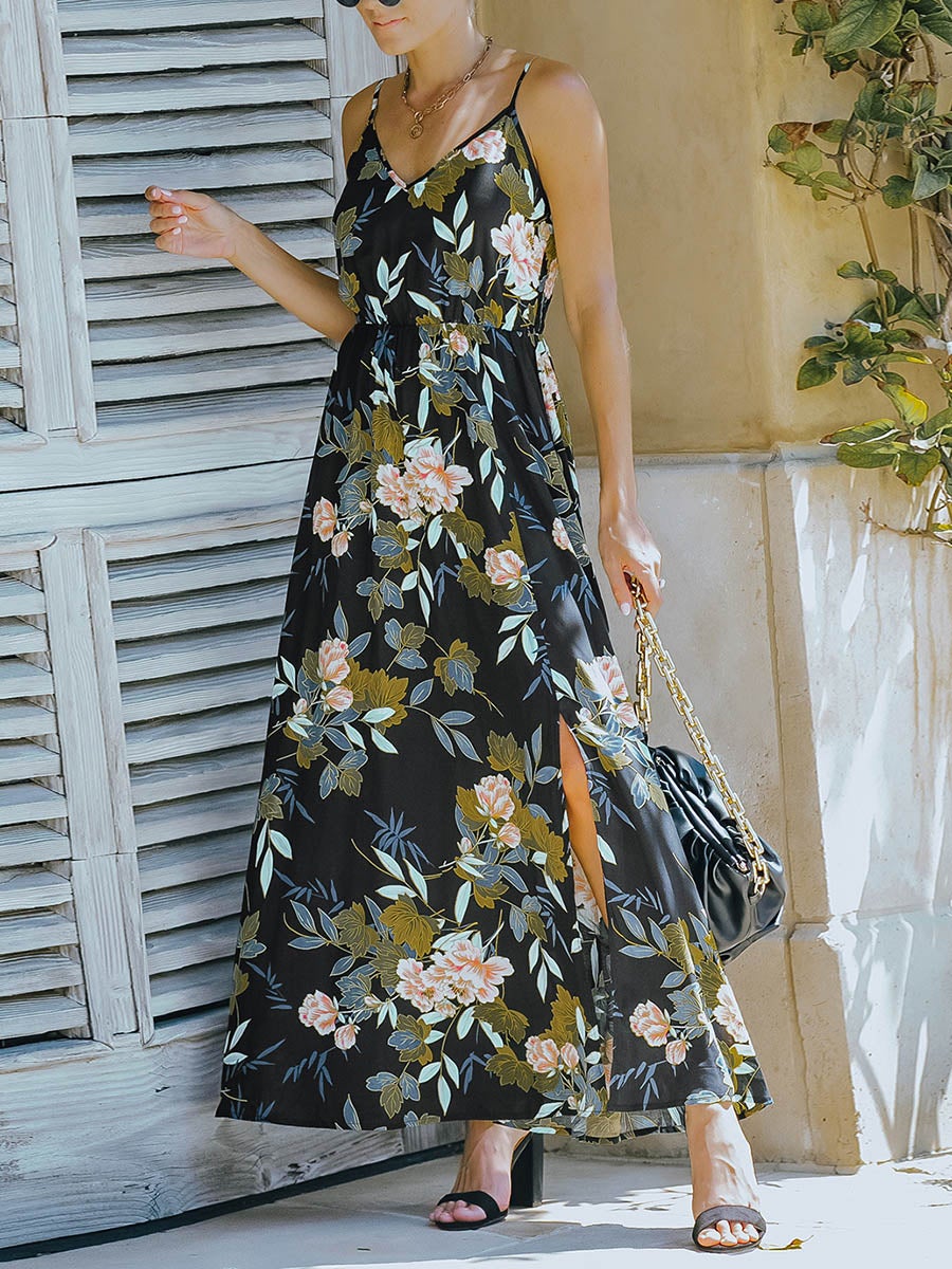Side Split V Neck Spaghetti Strap Maxi Dress