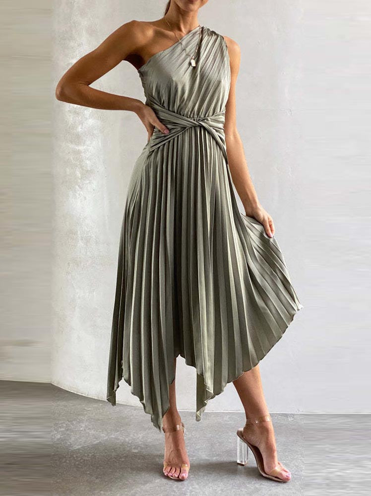 Sleeveless One Shoulder Front Tie Maxi Dress