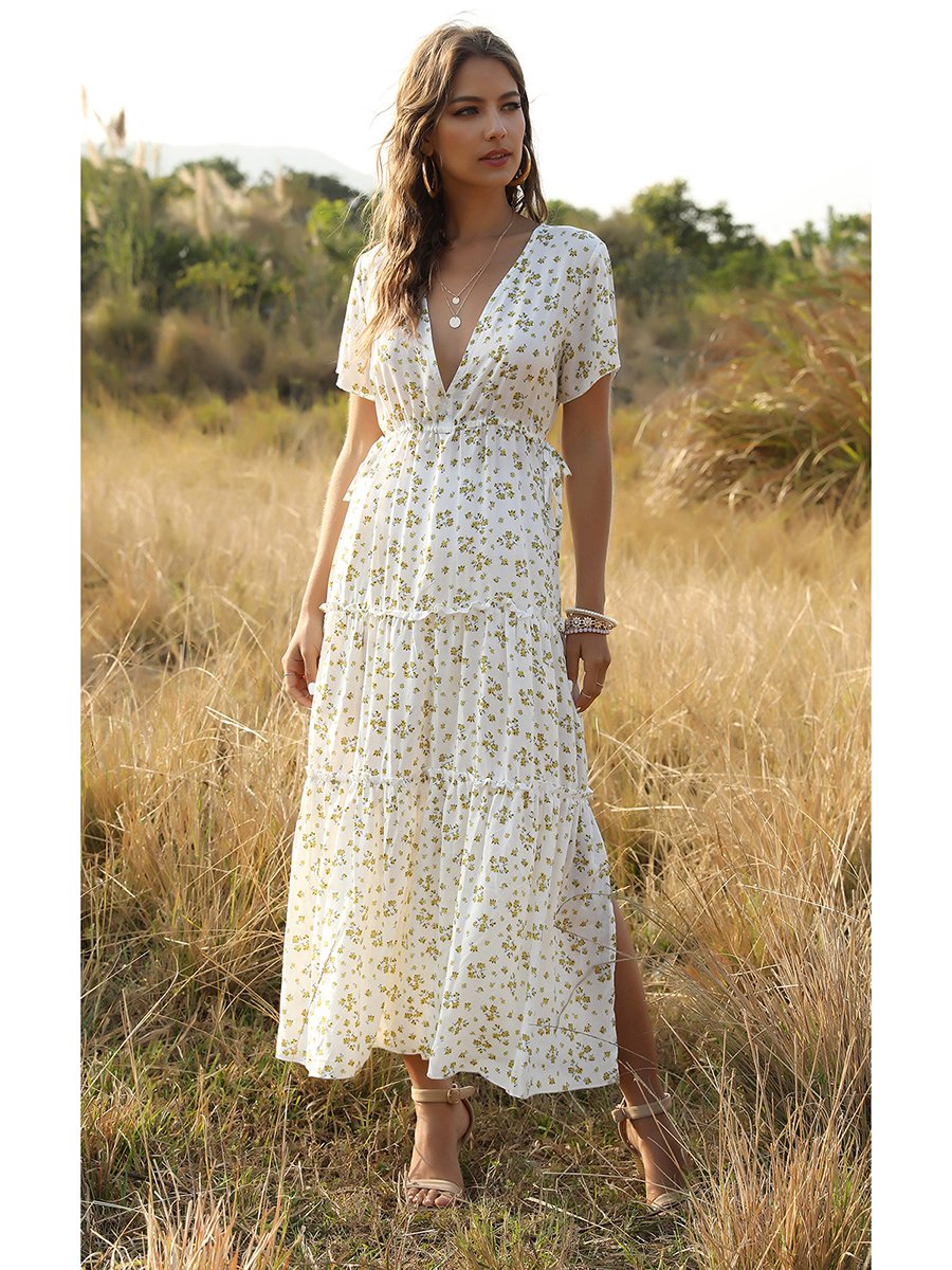 Features: Floral Print. Short Sleeves. Sexy Deep V Neck. Comfortable. Breathable