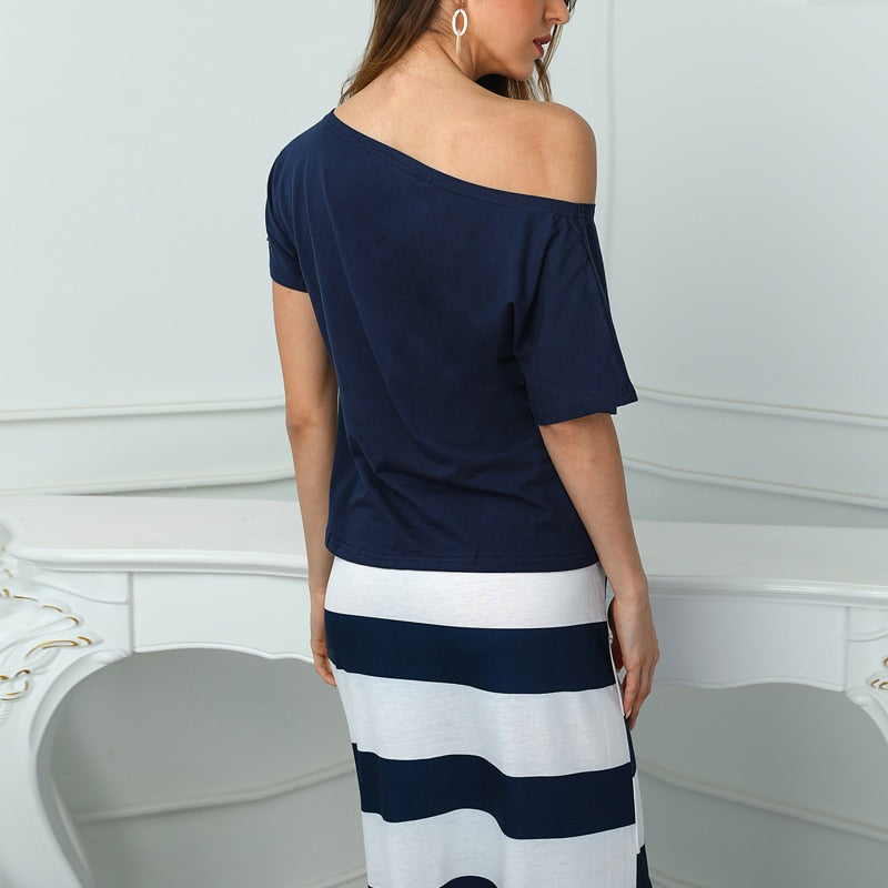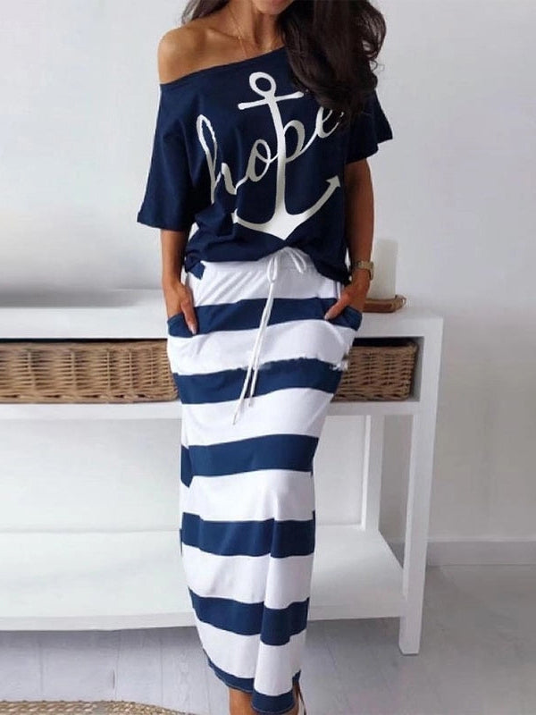 Casual Sexy Slash Ankle-Length Slim Striped Dress