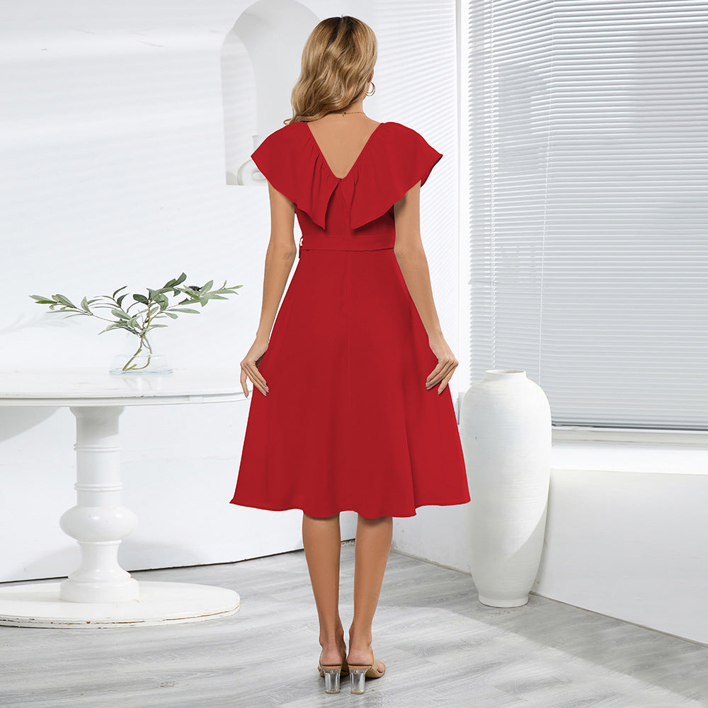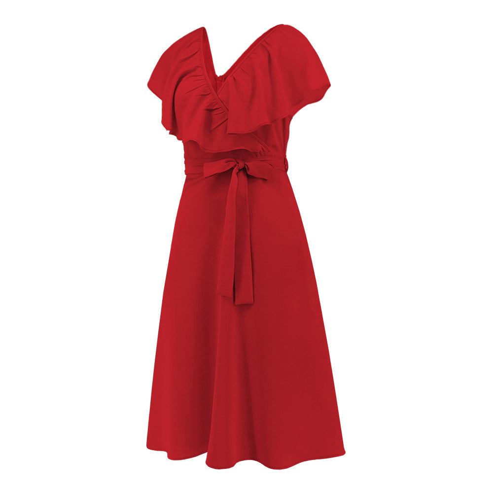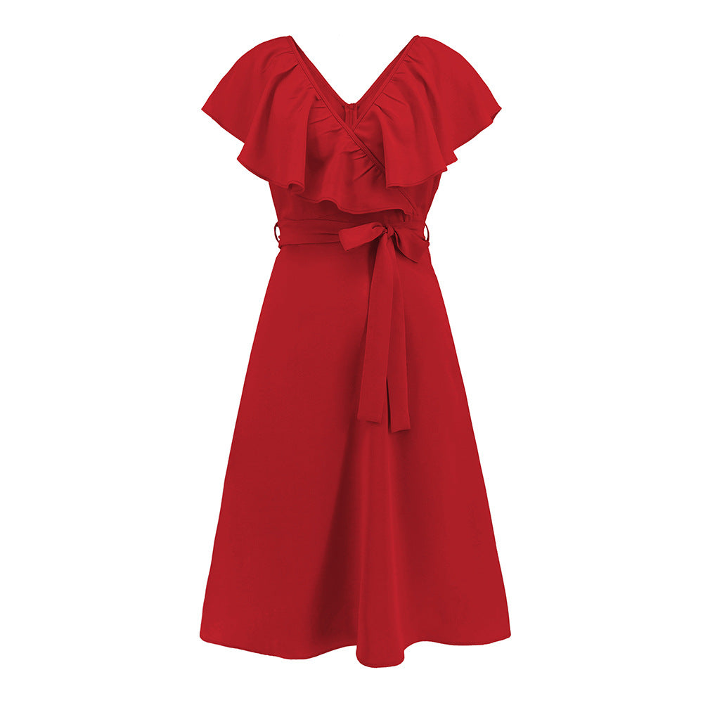 • Features: Short sleeve. v-neck. solid color. flared. fashion midi dress