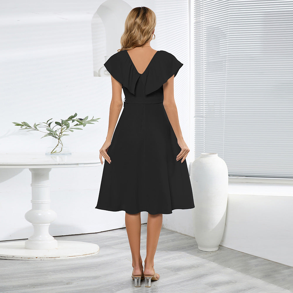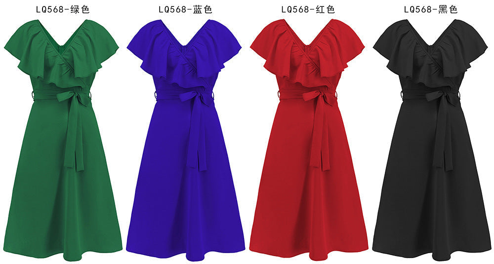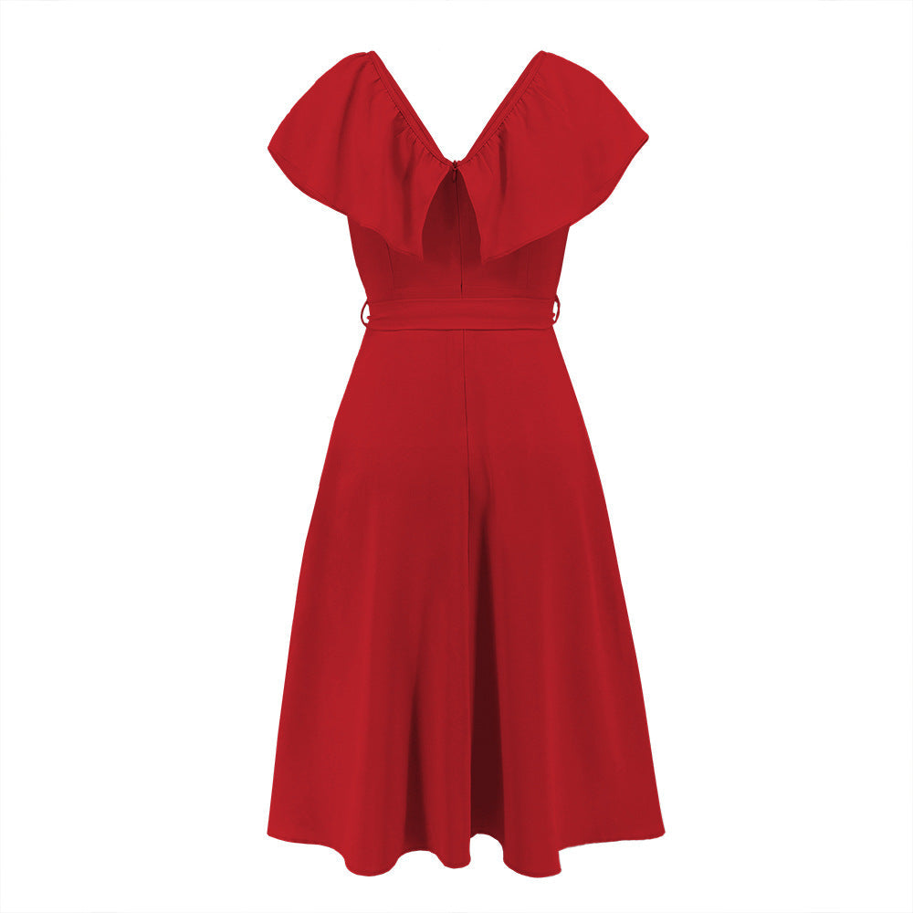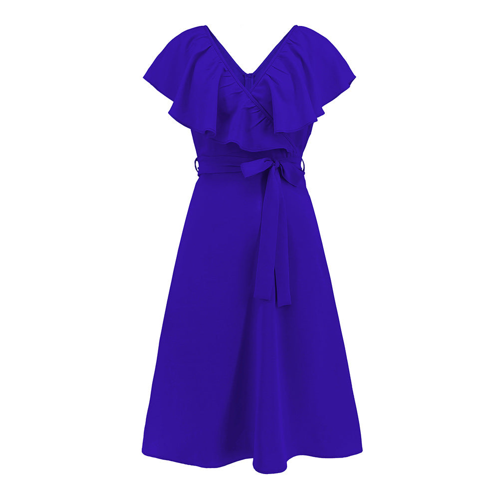 • Features: Short sleeve. v-neck. solid color. flared. fashion midi dress