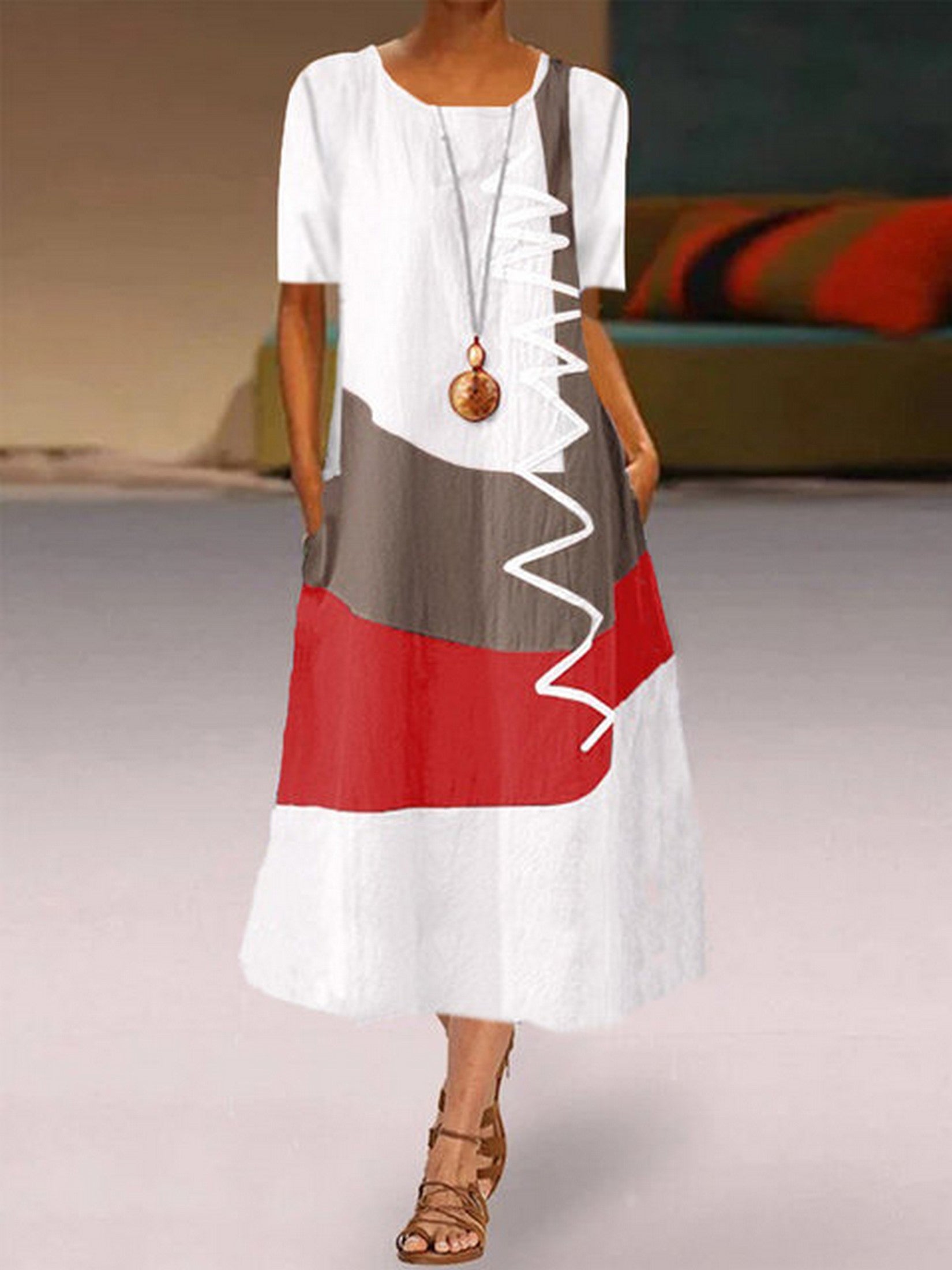 Casual Vintage Boho Floral Tunic Loose Swing Long Dress