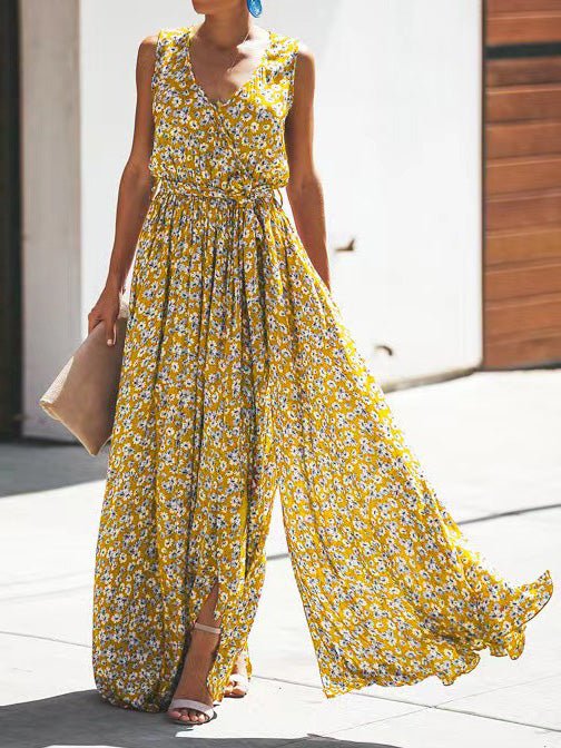 Women's Dresses Floral Print V-Neck Sleeveless Slit Dress