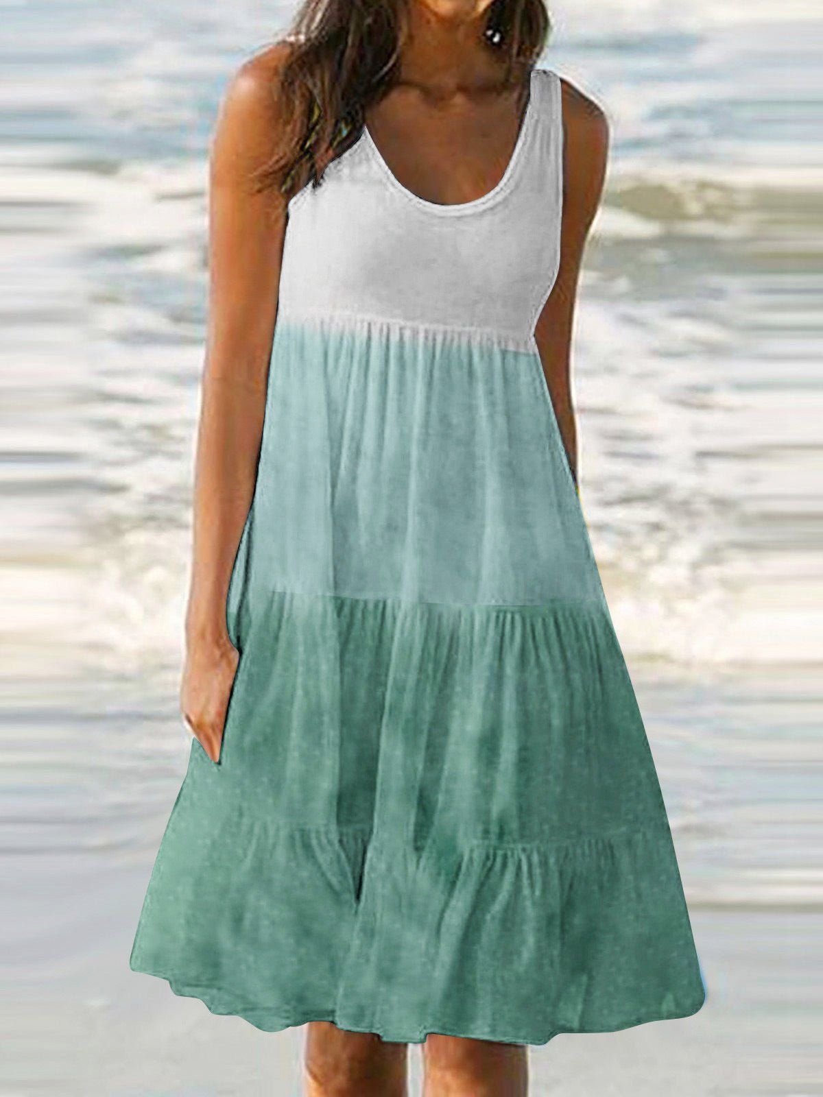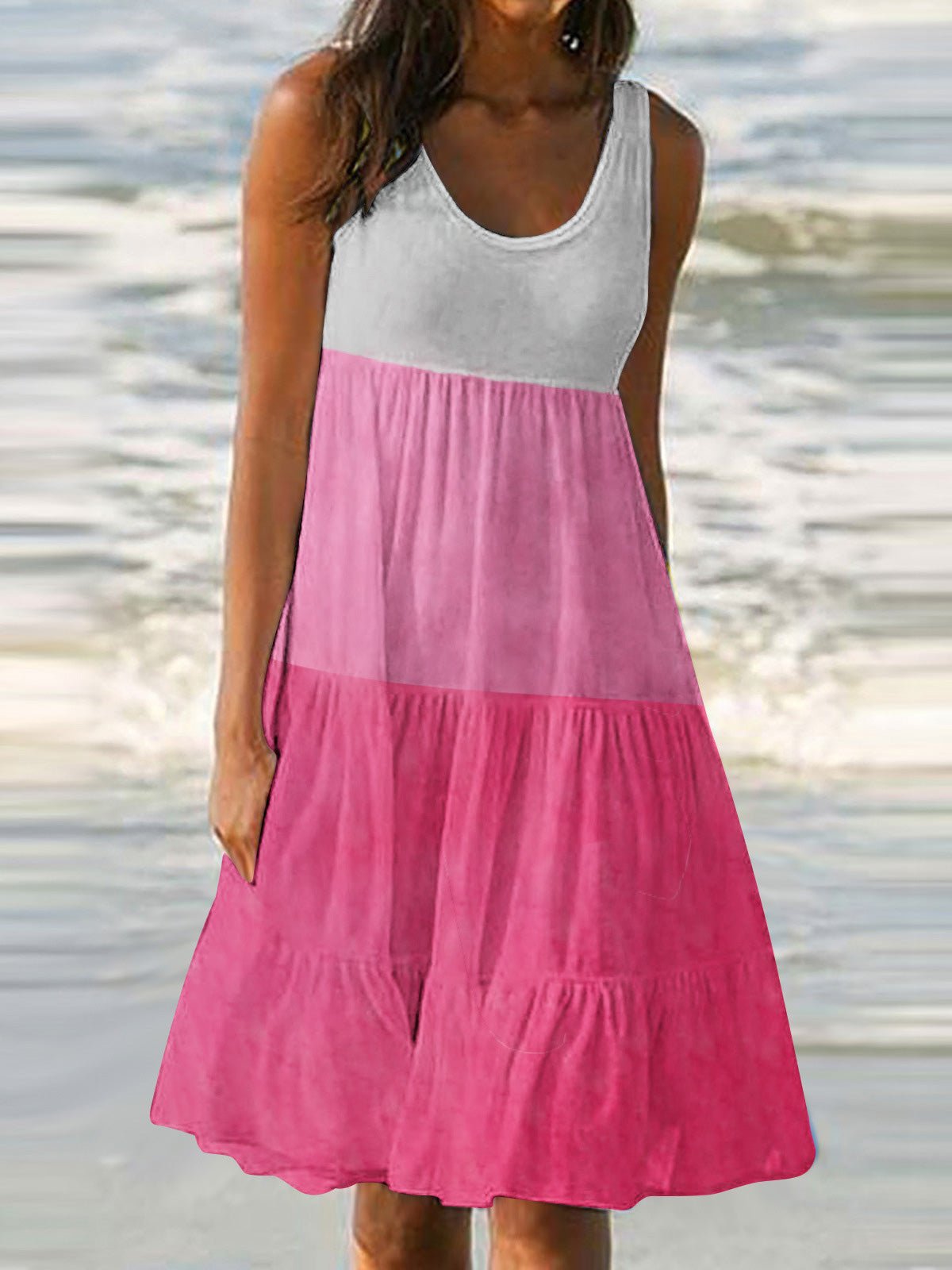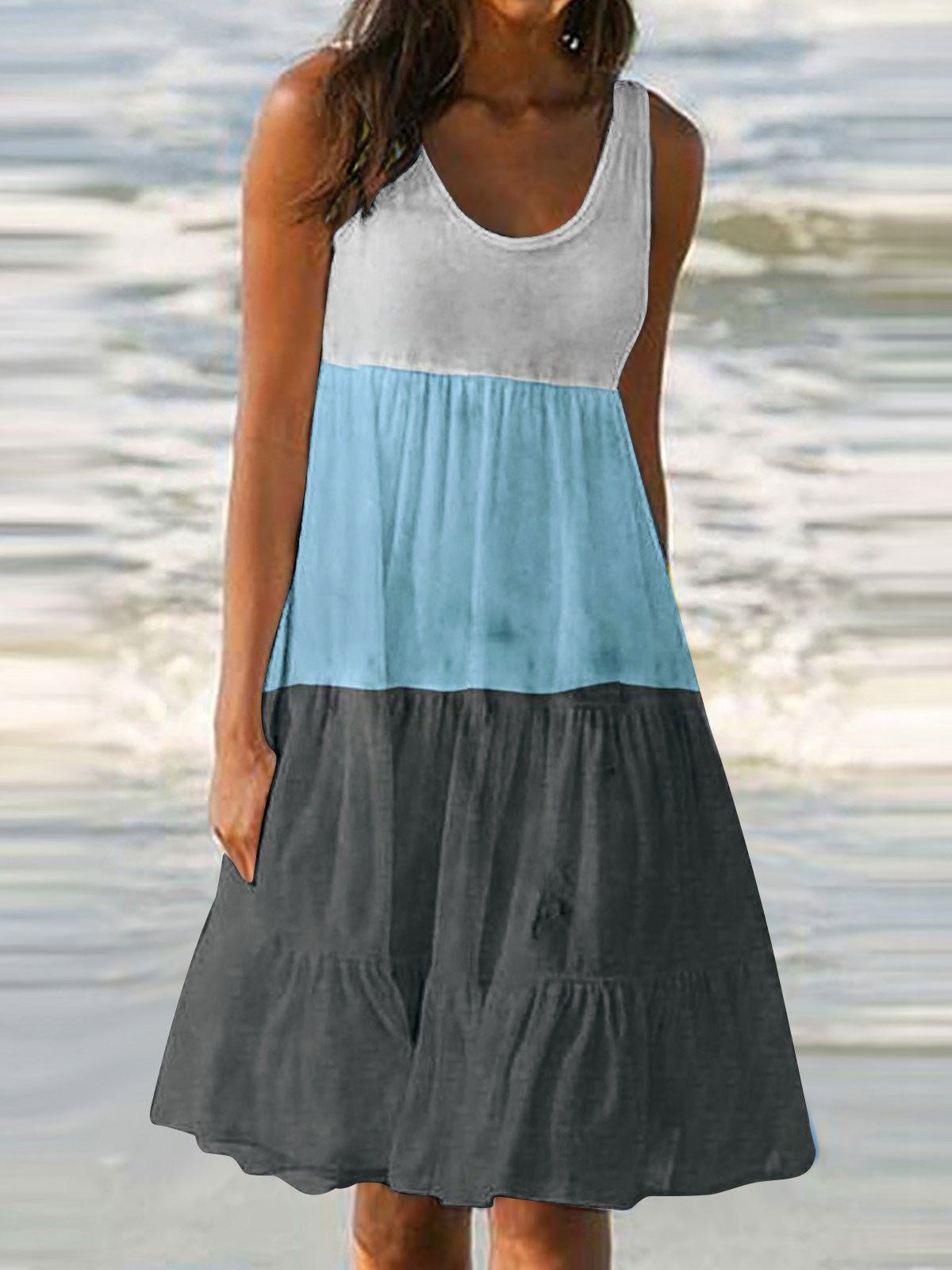 Women's Dresses Multicolor Print Crew Neck Sleeveless Dress
