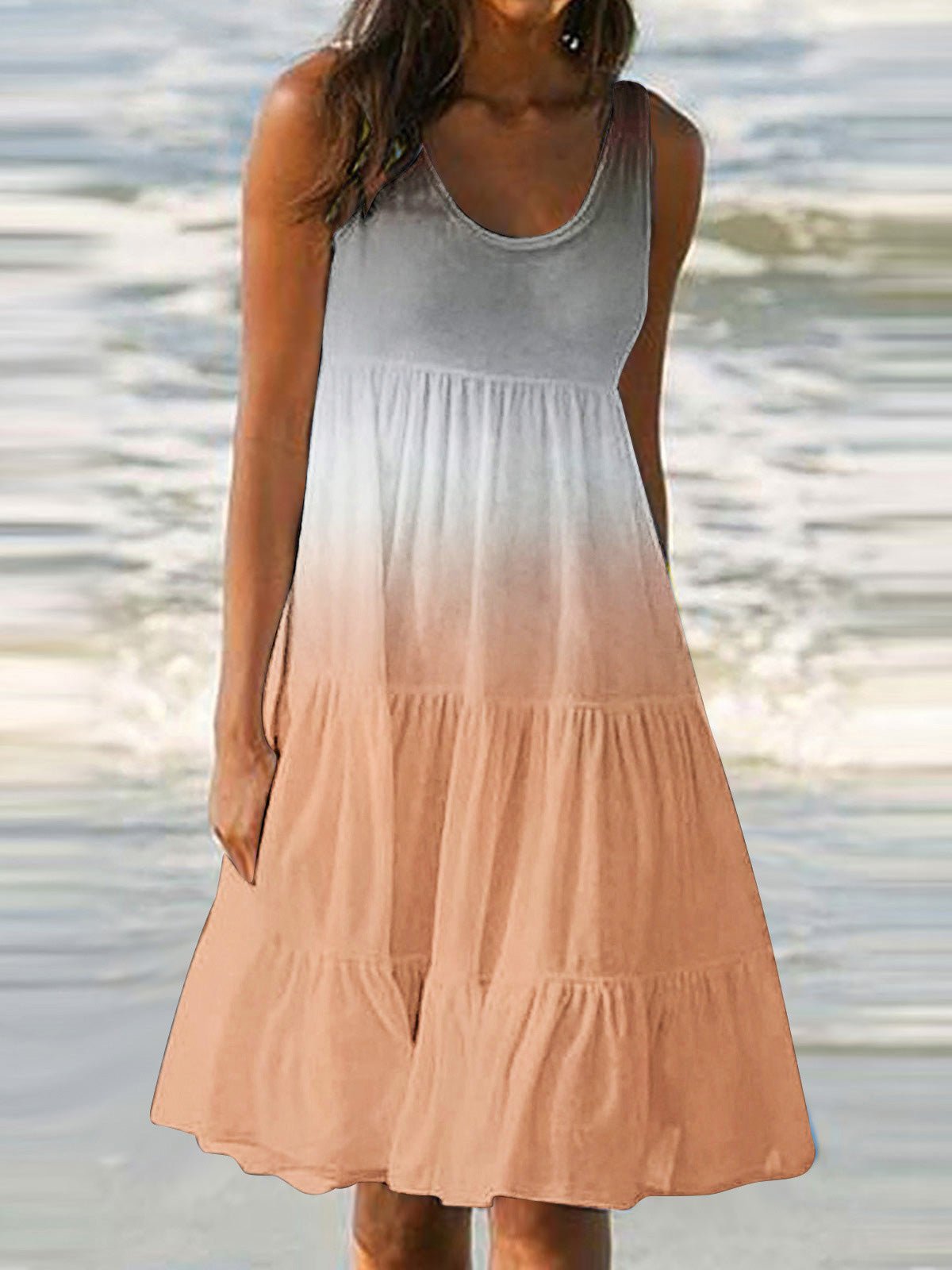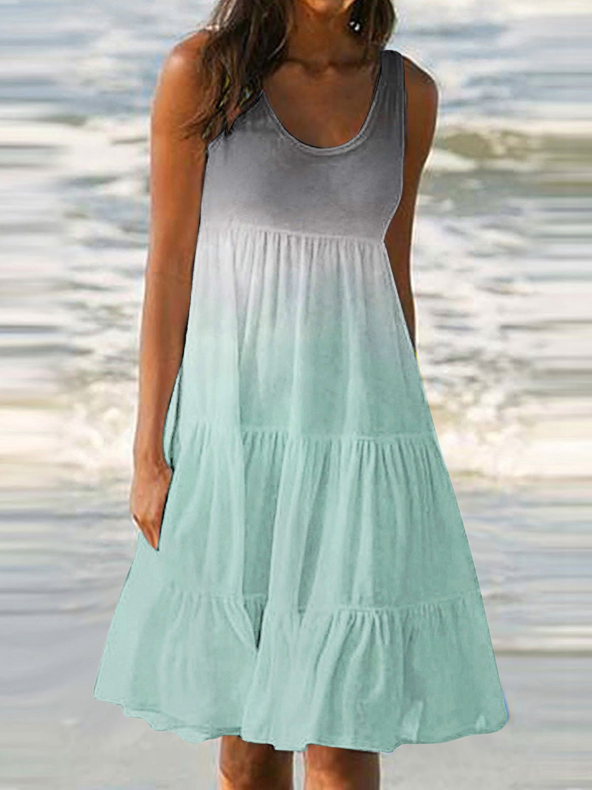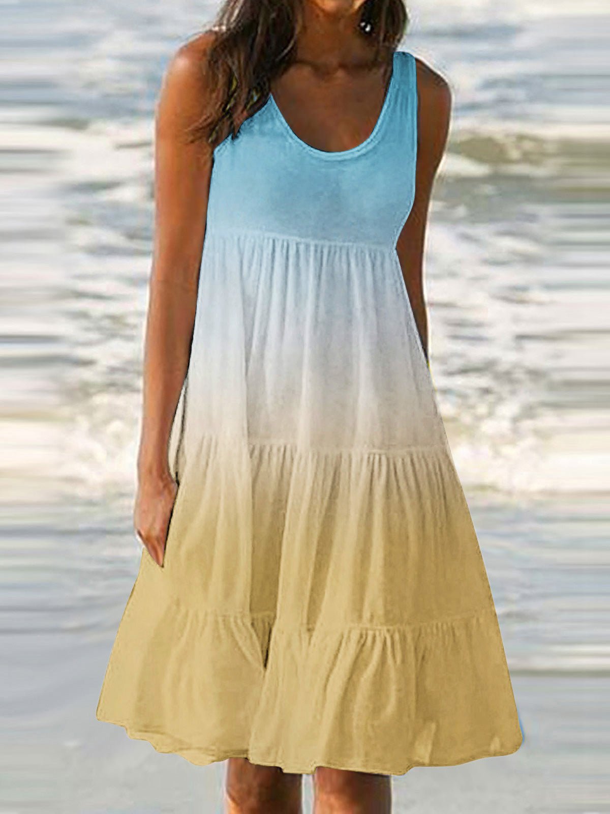 Women's Dresses Multicolor Print Crew Neck Sleeveless Dress