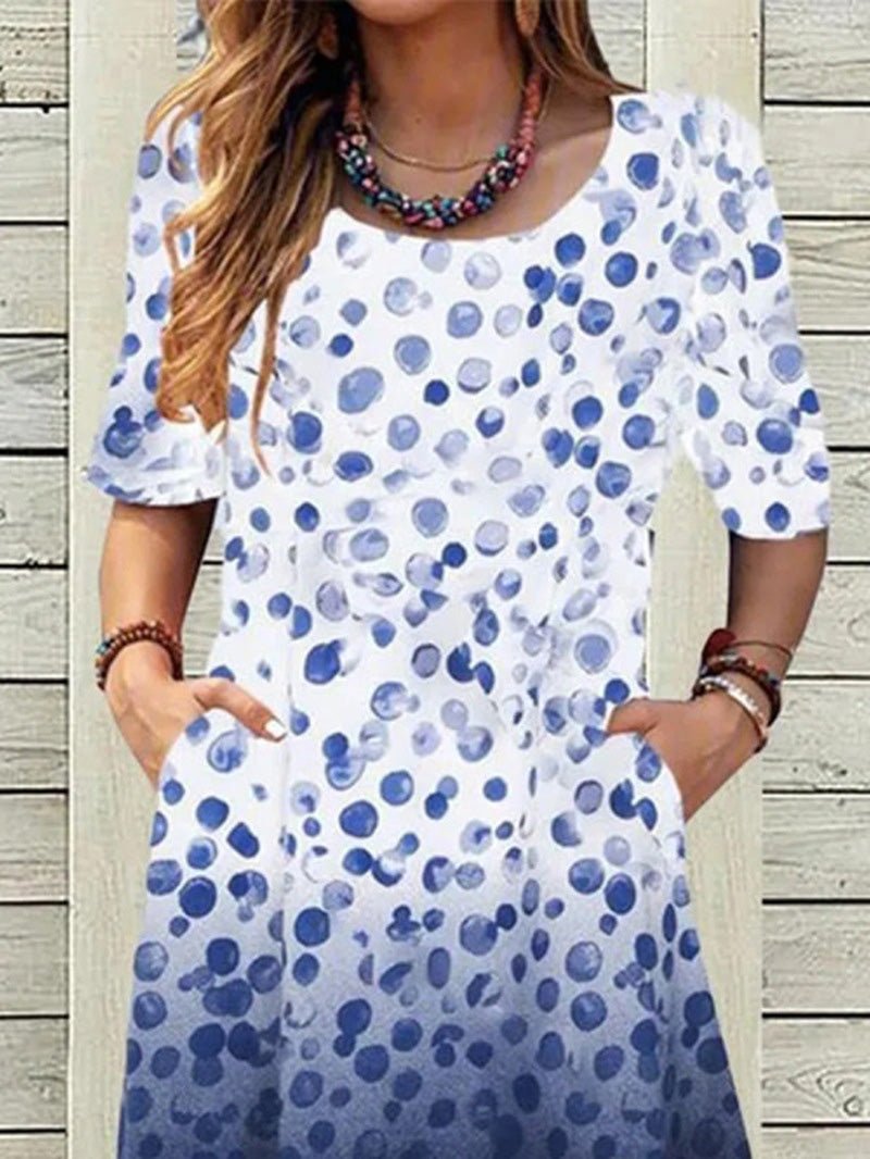 Women's Dresses Petal Print Short Sleeve Crew Neck Loose Dress