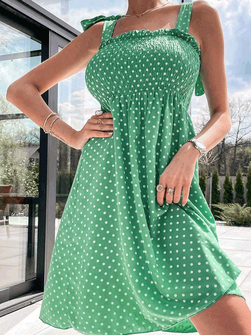 Women's Dresses Polka Dot Print Belted Sleeveless Dress