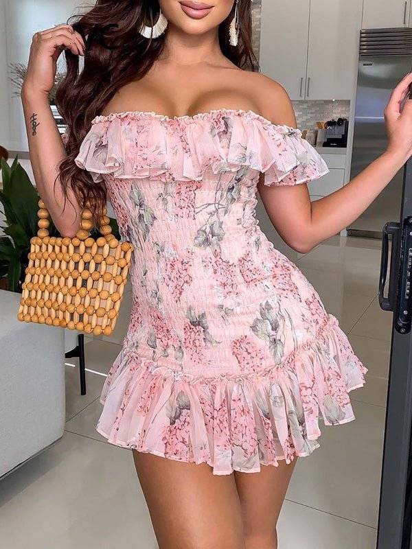 Women's Dresses Printed One-Shoulder Chiffon Ruffle Dress