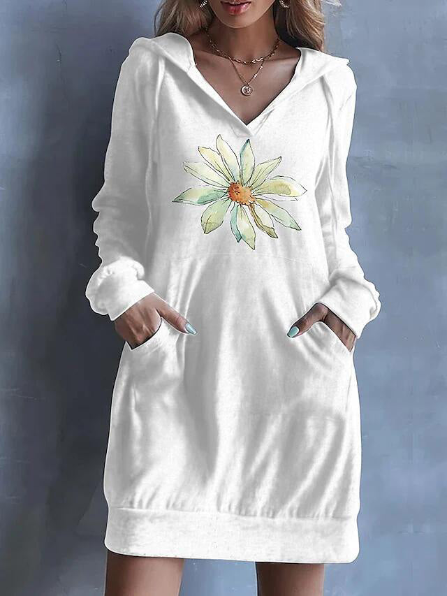 Women's Dresses Printed Pocket Long Sleeve Hooded Casual Dress