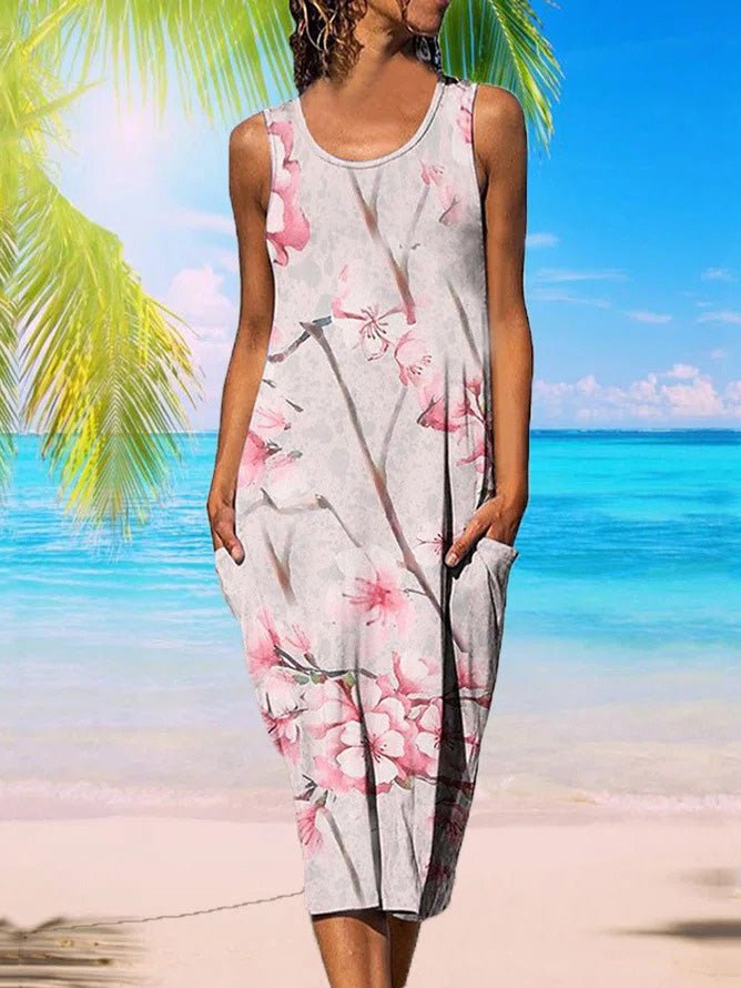 Women's Dresses Printed U-Neck Sleeveless Pocket Casual Dress