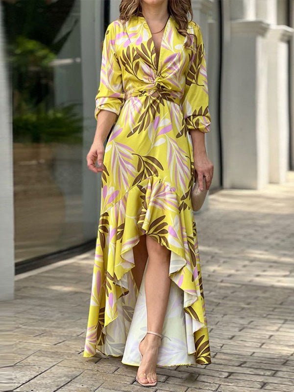 Women's Dresses Printed V-Neck High Waist Ruffle Dress