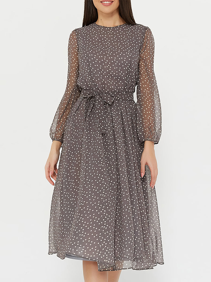 Look amazing in this women's Retro Chiffon midi dress! This elegant long sleeve design features a round neck. polka dot print. and midi length for a timelessly stylish look. Crafted from comfortable chiffon fabric. this dress is perfect for your next special occasion.