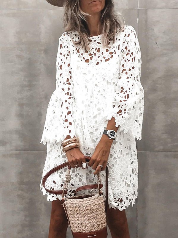 Women's Dresses Round Neck Lace Flare Sleeve Ruffle Dress