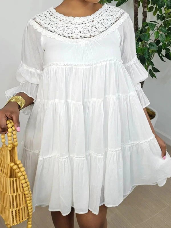 Women's Dresses Round Neck Lace Ruffle Casual Dress