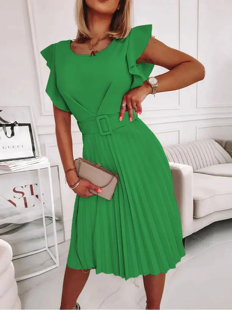 Women's Dresses Round Neck Pleated Short Sleeve Dress