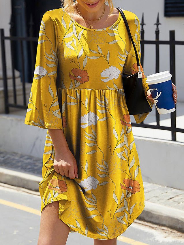 Women's Dresses Round Neck Printed Three-Quarter Sleeve Dress