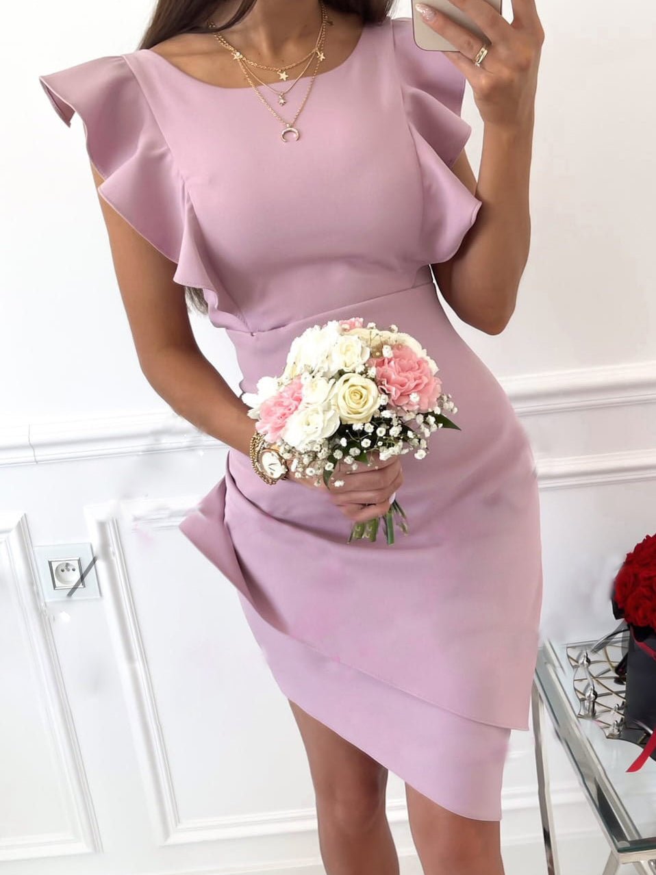 Women's Dresses Round Neck Ruffle Sleeveless Slim Fit Dress