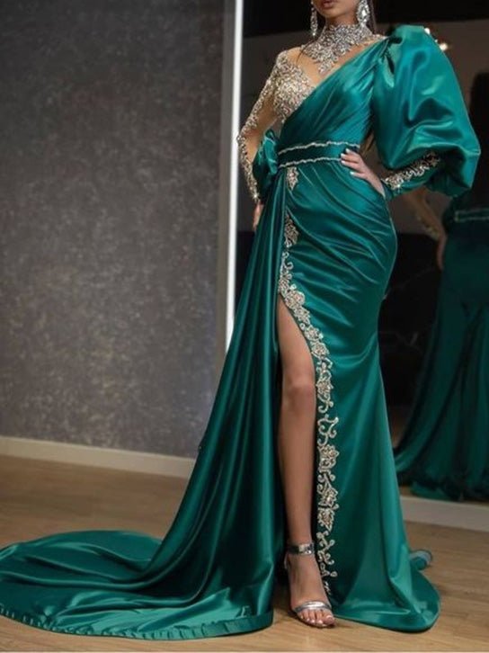 Women's Dresses Sequin Panel Long Sleeve Slit Party Dress