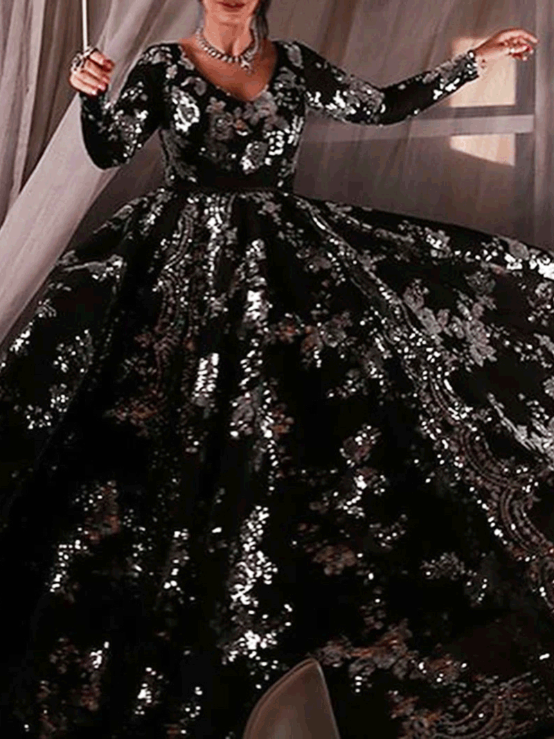Women's Dresses Sequin V-Neck Long Sleeve Dress