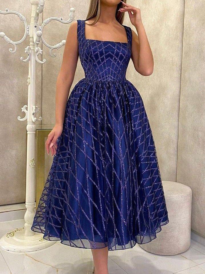 Women's Dresses Sequined Mesh Square Neck Sleeveless Dress
