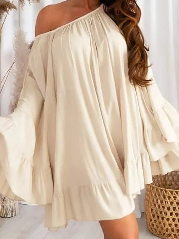 Women's Dresses Sloping Shoulder Loose Ruffle Dress