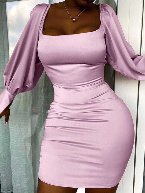 Women's Dresses Solid Square Neck Puff Sleeve Slim Fit Dress