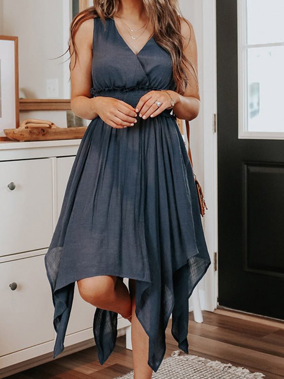Women's Dresses Solid V-Neck Irregular Sleeveless Dress