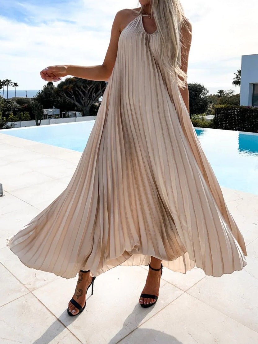 Women's Dresses Solid V-Neck Pleated Sleeveless Dress
