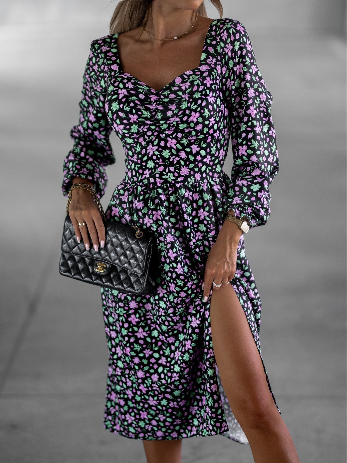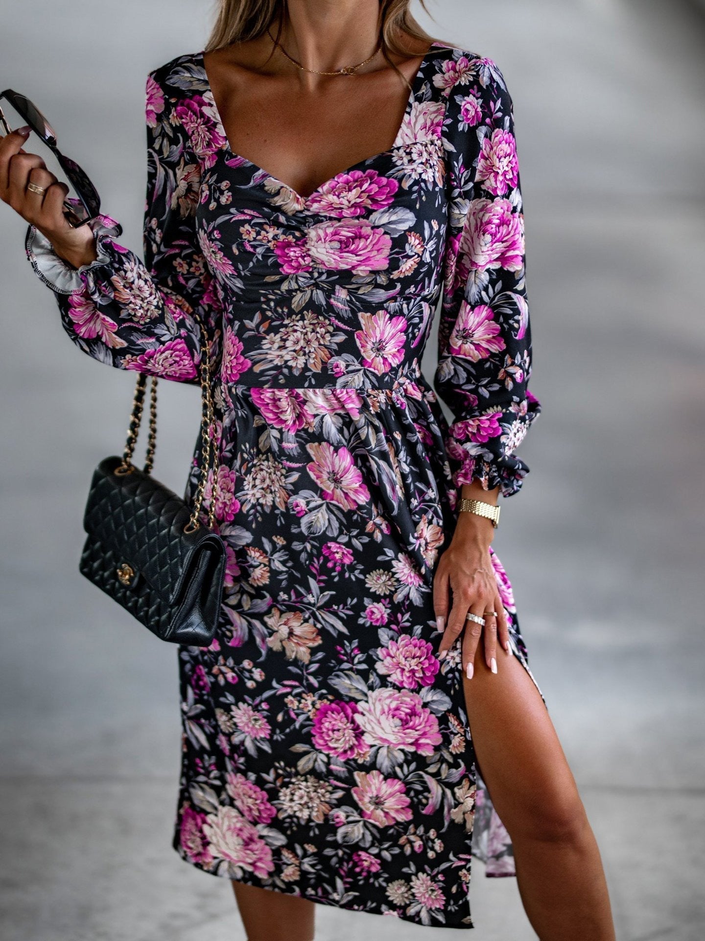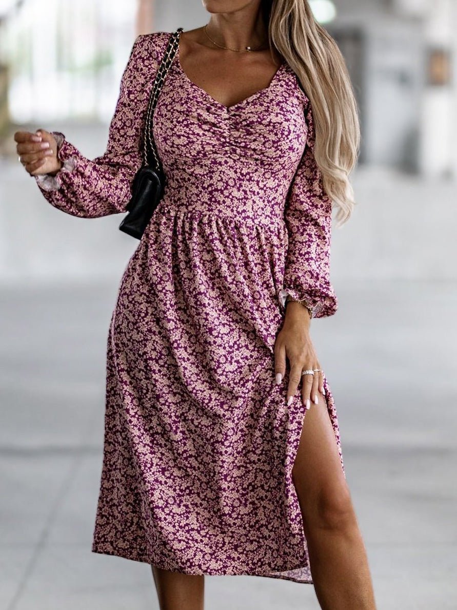 Women's Dresses V-Neck Long Sleeve Slit Print Dress