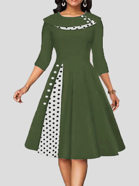 Women's Dresses Vintage Polka Dot Mid Sleeve Casual Dress
