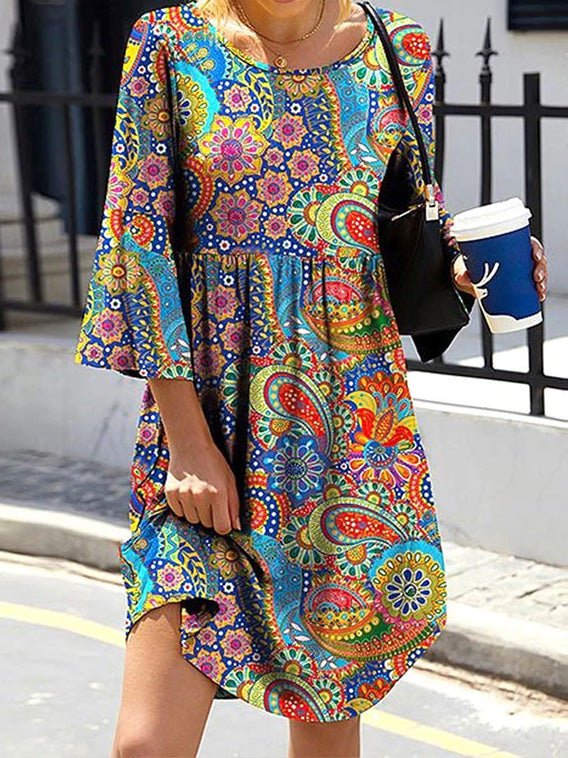 Women's Dresses Vintage Print Crew Neck Long Sleeve Dress