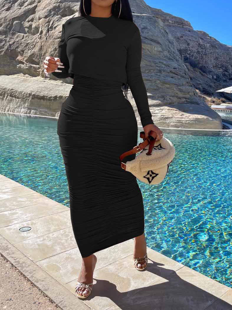 Women's Sets Solid Long Sleeve Pullover Top & Skirt Two Piece Set