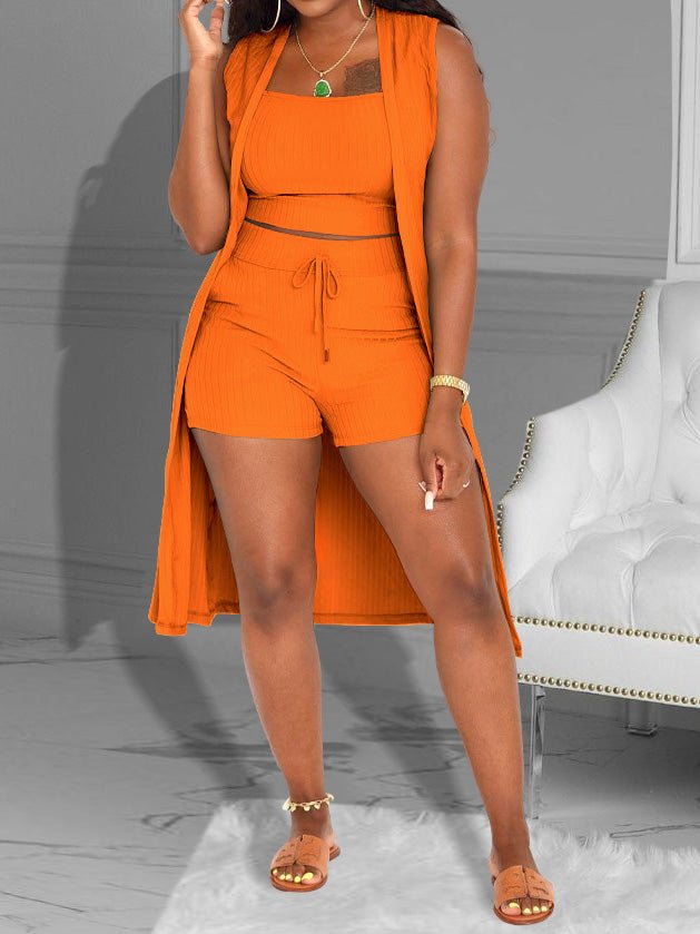 Women's Sets Solid Sleeveless Tank Shorts Three-Piece Set