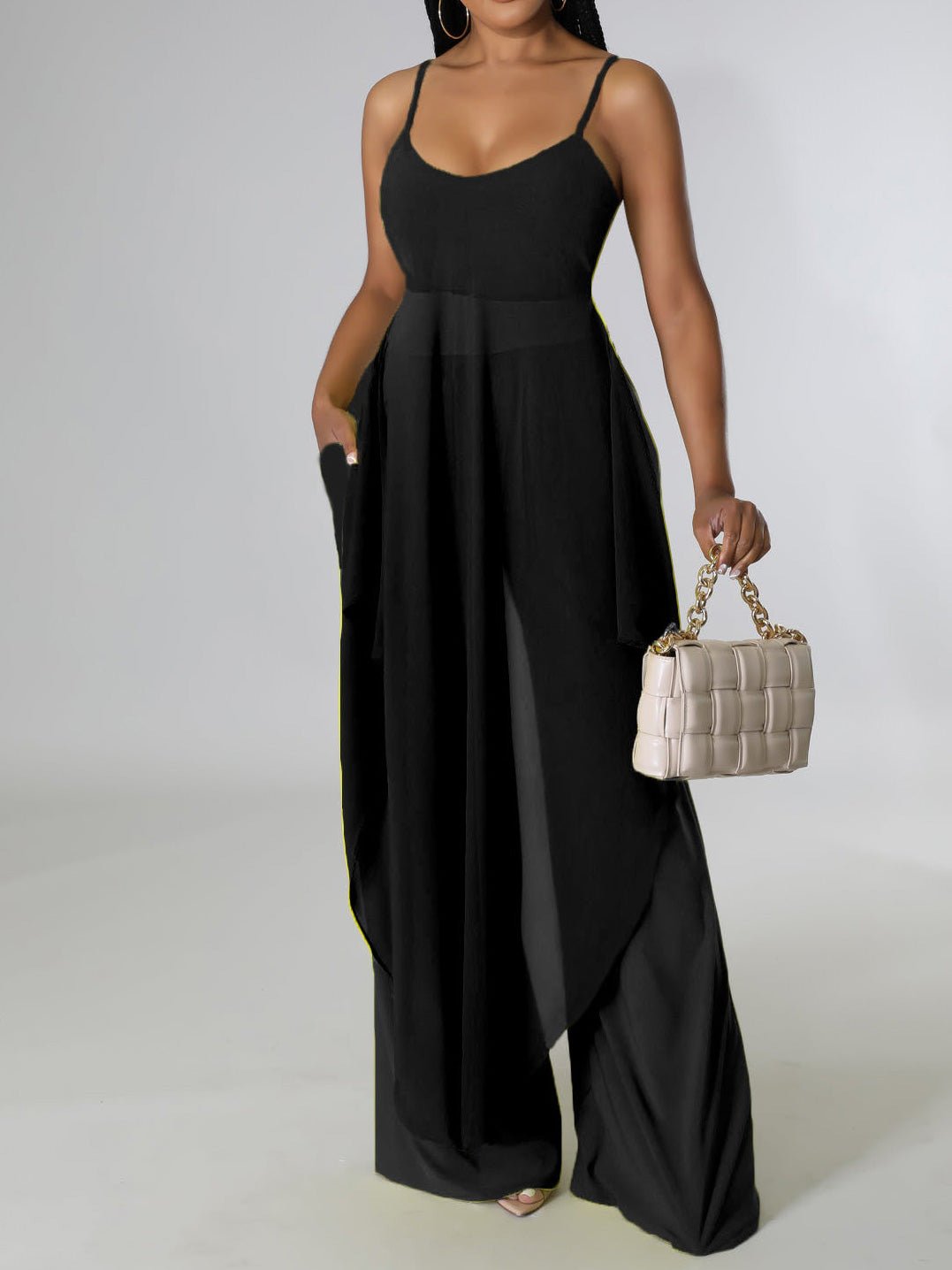 Women's Sets Solid Sling Mesh Splicing Irregular Two-Piece Set