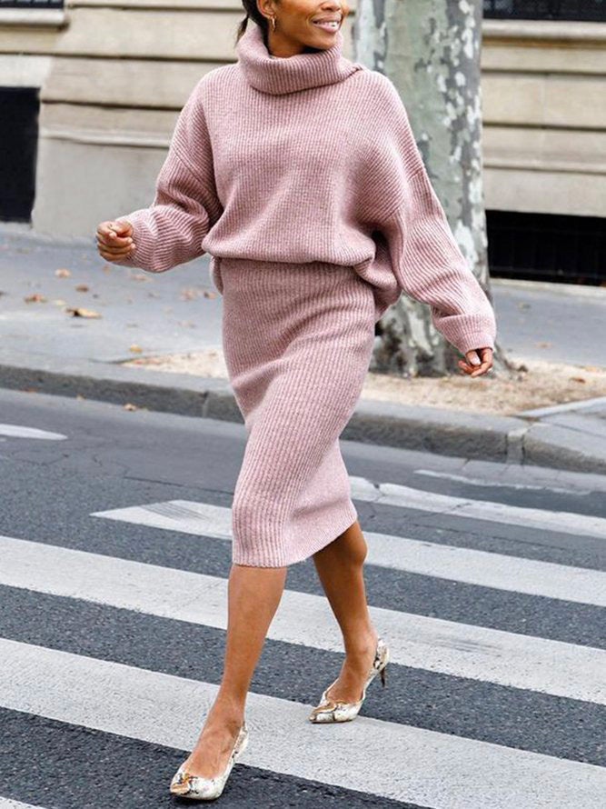 Women's Sets Solid Turtleneck Sweater & Slim Skirt Two-Piece Set