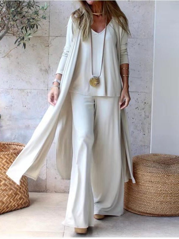 Women's Sets V-Neck Halter Cardigan Straight-Leg Pants Three-Piece Suit