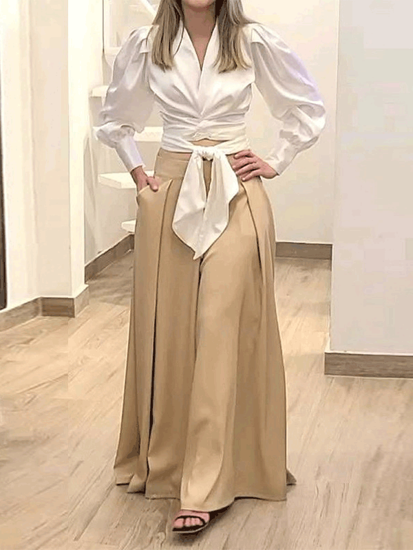 Women's Sets V-Neck Long Sleeve Blouses & Wide Leg Pants Two-Piece Set