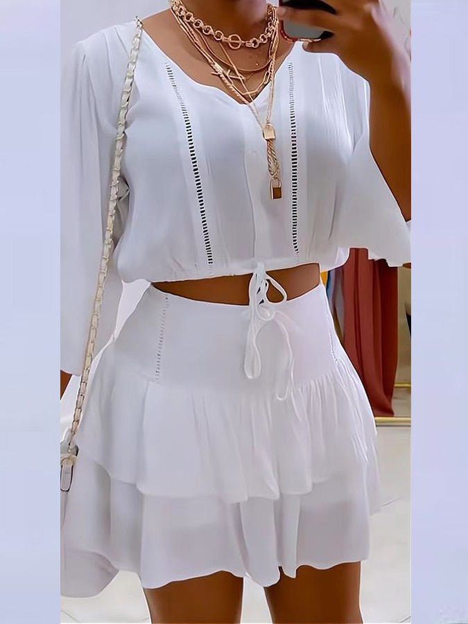 Women's Sets V-Neck Long Sleeve Top & Skirt Two Piece Set