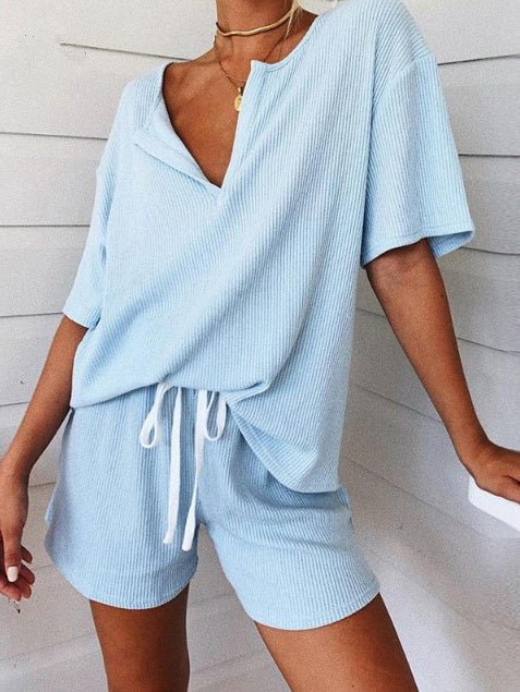 Women's Sets V-Neck Short Sleeve Top & Shorts Two Piece Set