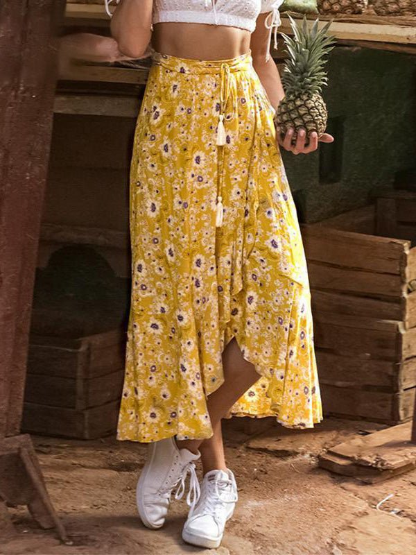 Women's Skirts Floral Print Irregular Ruffle Skirt