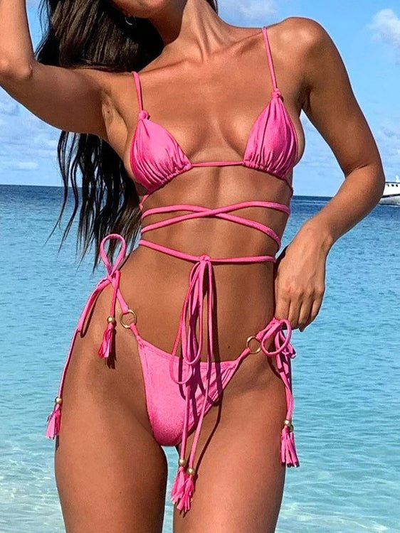 Women's Swimsuits Lace-Up Fringed Two-Piece Bikini
