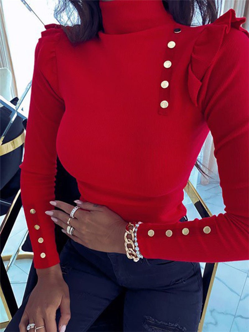 • Feature: High Neck. Button. Slim Fit. Long Sleeve. Knit
