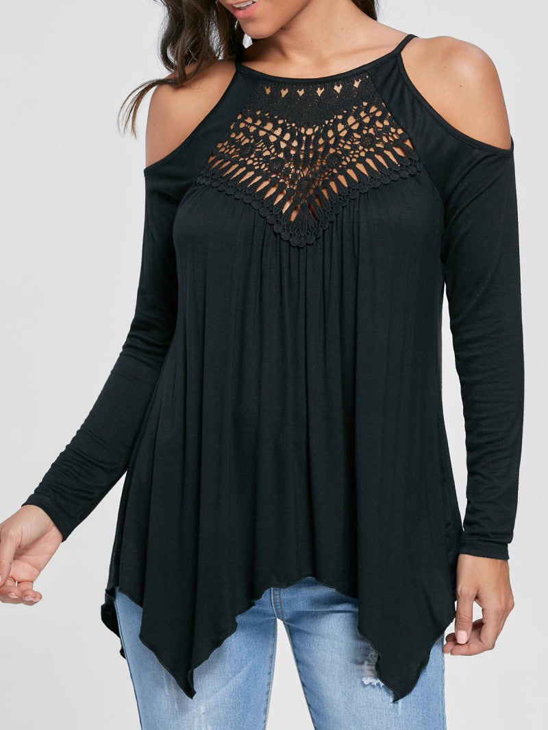 Women's T-Shirts Hollow Off Shoulder Long Sleeve T-Shirt