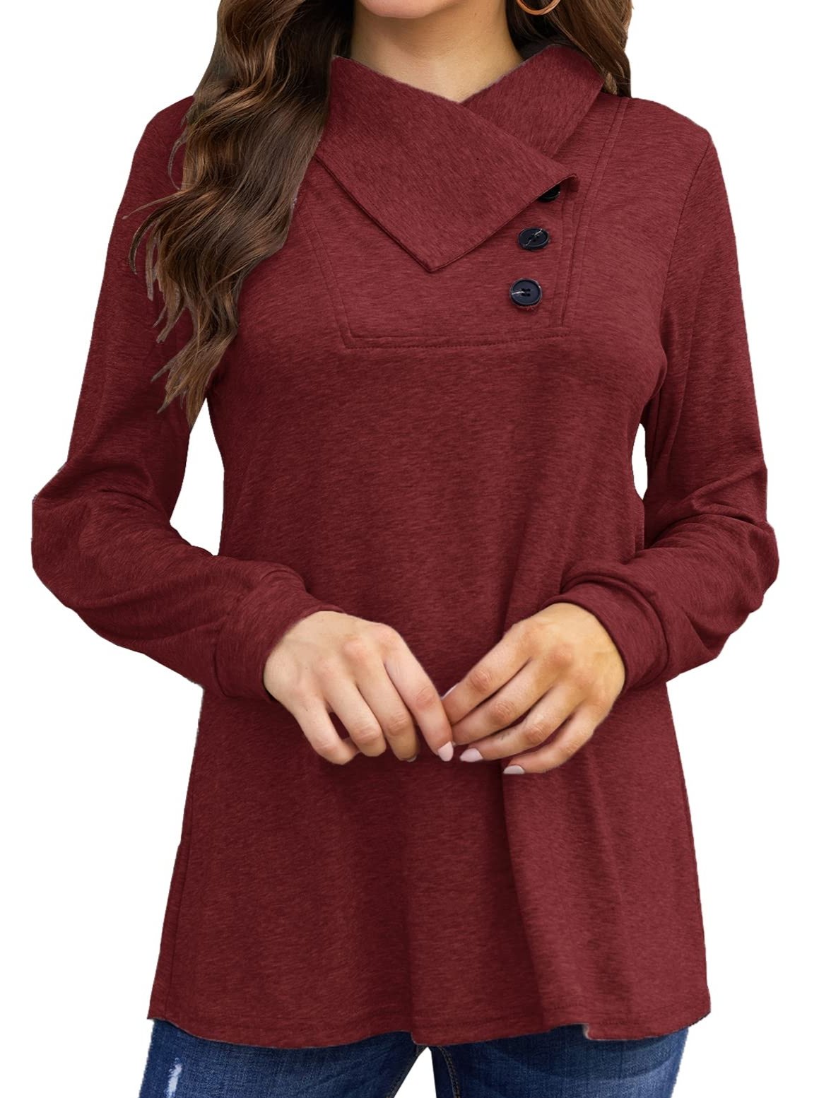 Not only will theLong Sleeve Cowl Neck Button Lightweight T-Shirt put a smile on your face. it'll also show off your fabulous style sense! The cowl neck and long sleeves keep the classic tee look on this top keeping it fresh and unique.?