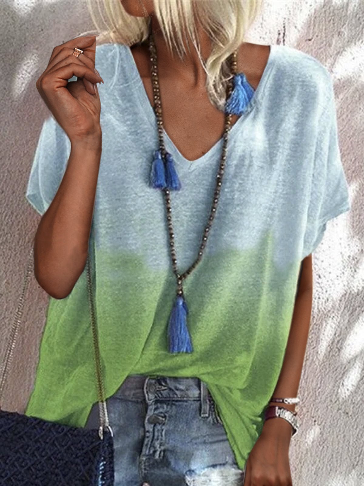 Women's T-Shirts Loose Print V-Neck Short Sleeve T-Shirt