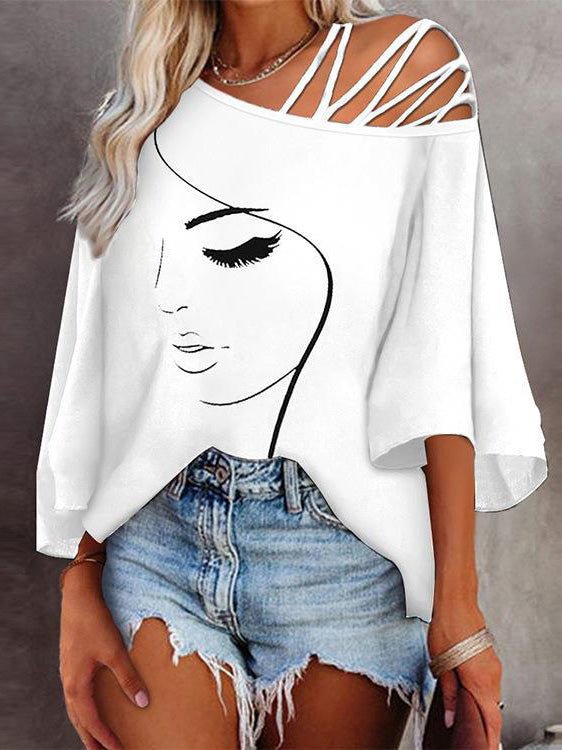 Women's T-Shirts Printed Off Shoulder 3/4 Sleeve T-Shirt